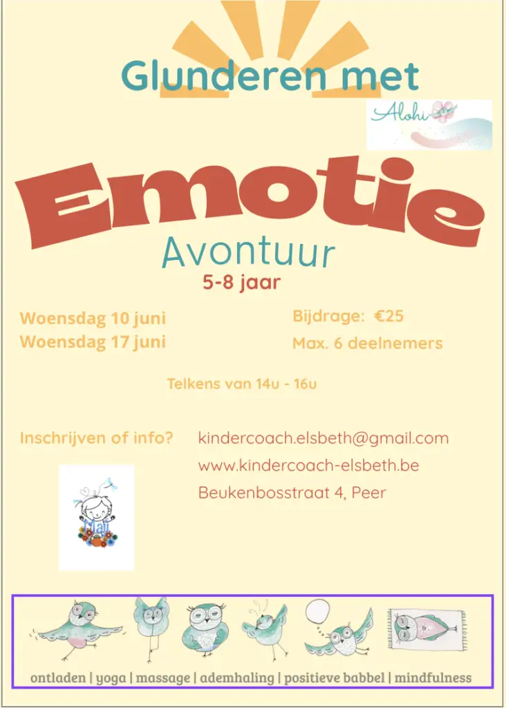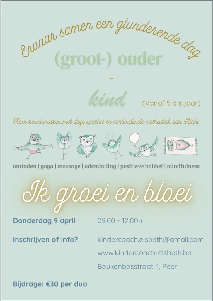 Deze verbindende workshop voor ouder en kind combineert kinderyoga, bewegingsspelletjes, ademhalingsoefeningen, massage en mindfulness. Ideaal voor ouders die quality time willen doorbrengen met hun kind en tegelijk willen inzetten op rust, zelfvertrouwen en emotionele verbinding.